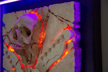 Heavy Rock Backlit 'naked' version. No frame museum quality fossil irregular edge. Urethane and foam cast. Light is rated for 10000 hours. Color options available.